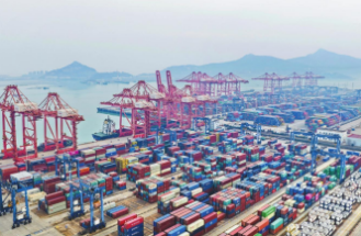 海關(guān)總署1月14日發(fā)布數(shù)據(jù)顯示,2025年,我國貨物貿(mào)易進出口總值45.47萬億元,同比增長3.8%,自2017年起連續(xù)9年保持增長。圖為1月14日拍攝的江蘇連云港港集裝箱碼頭外貿(mào)裝卸作業(yè)區(qū)。