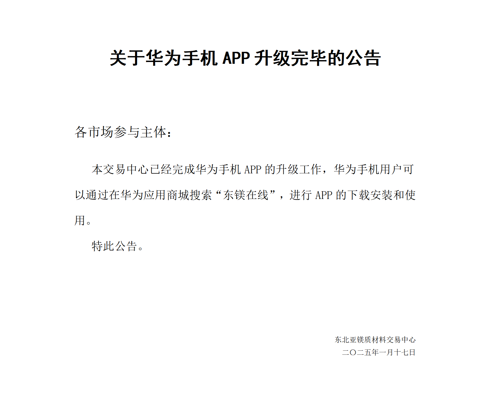關(guān)于華為手機(jī)app升級(jí)完畢的公告